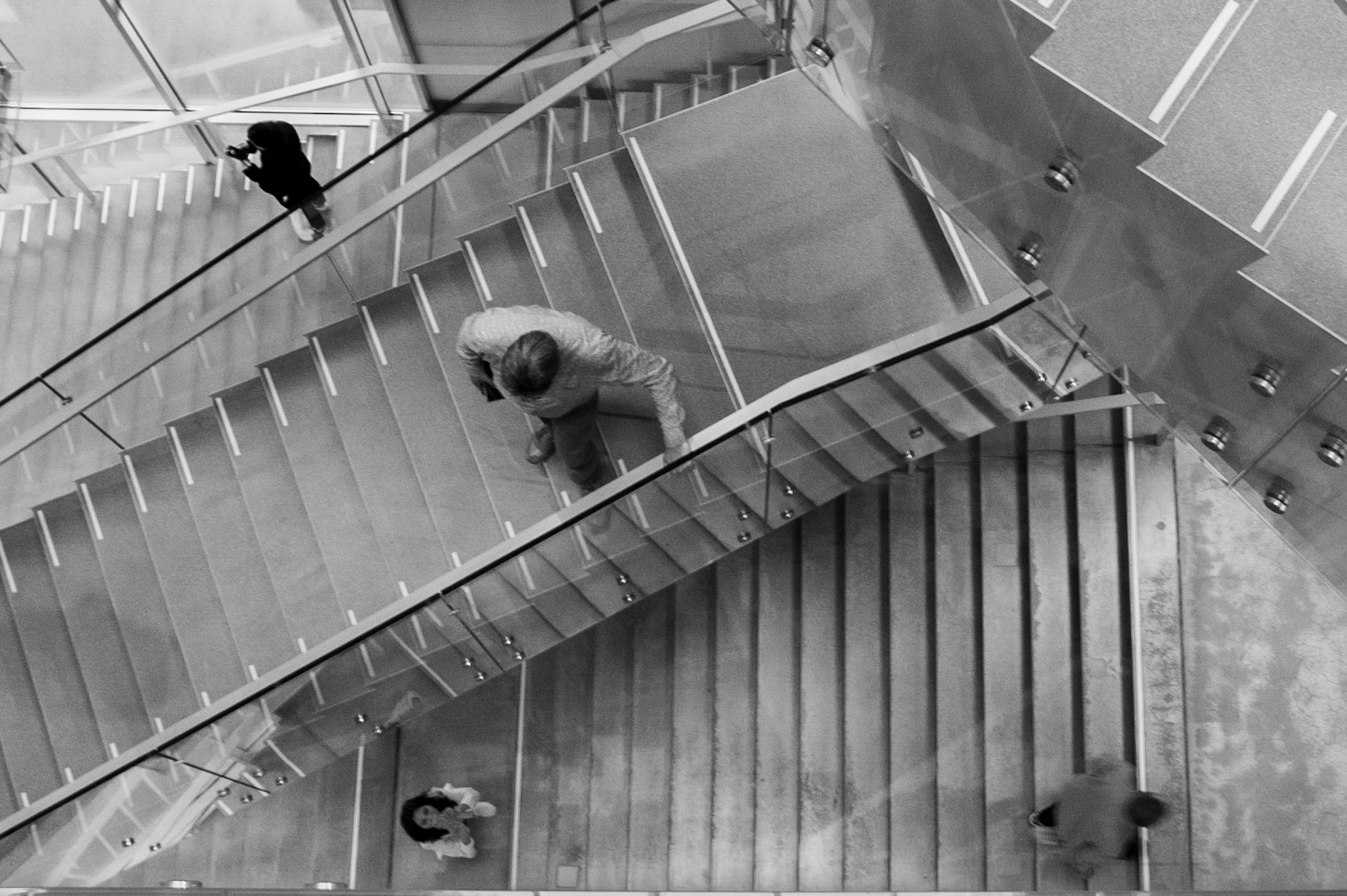 When in the right place, you can also observe and make the focal point of your photograph, not a particular element but the relation between the different elements in the frame. The photograph below was taken from a high point of view inside the Depot Boijmans Van Beuningen in Rotterdam.